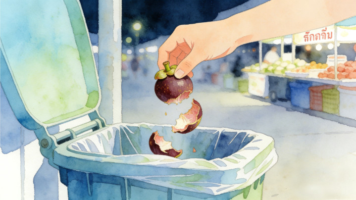 在泰国夜市、当地市场、路边摊买山竹后,直接在户外通风处或店家专属座位吃完,果皮垃圾交由摊商处理,从根源避免染色和招虫问题,这是最稳妥的做法。