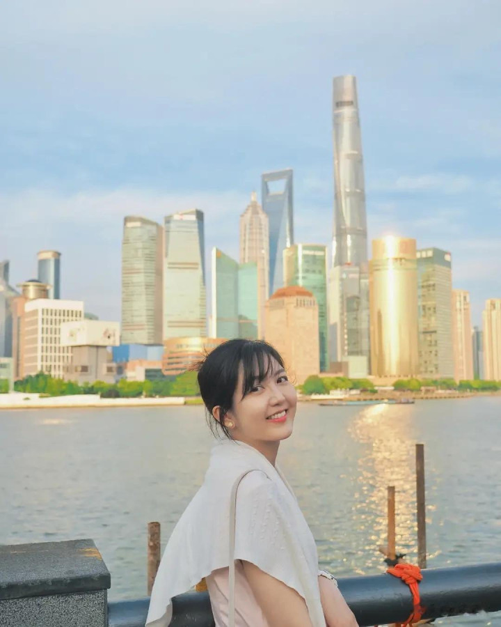 今年6月,她还到上海旅游,在各地标打卡,画面中笑容明媚;
