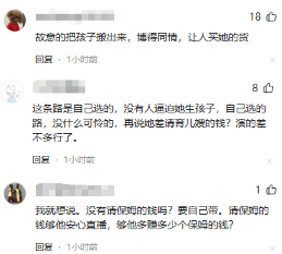 网友辣评几乎一边倒地指向“炒作”与“卖惨”:“没钱请保姆?直播赚得比普通人多多了,纯属立人设。”“故意的吧,利用孩子哭闹博同情,催销量。”“路是自己选的,当初未婚生子就该想到今天,没什么好心疼。”“事实证明,想靠孩子嫁入豪门,这算盘很难打响。”